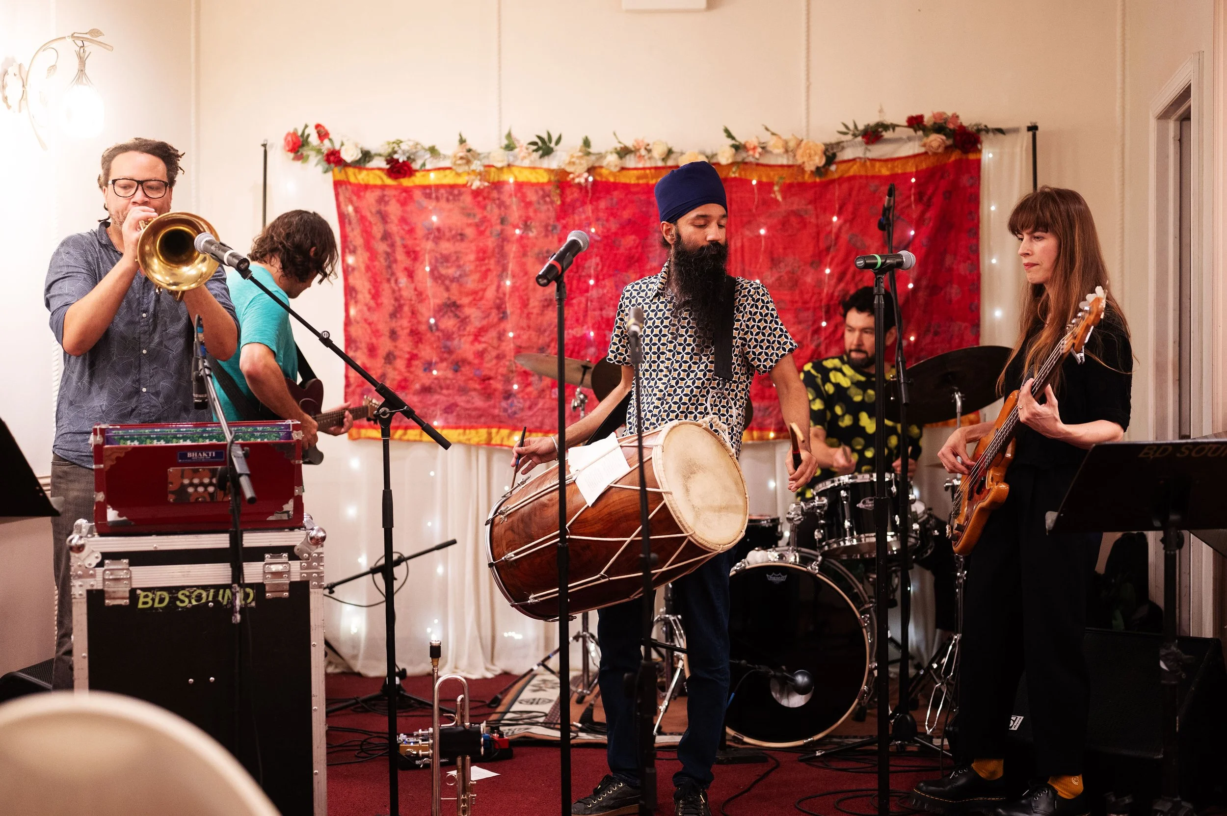 The Bhangra Liberation Orchestra makes rebellious, joyful dhol and brass-driven music to fortify our hearts on and off the dancefloor. Rooted in the genres of bhangra, Punjabi folk, qawwali, and jazz, BLO draws from Punjabi ancestral wisdom with a heavy dose of musical improvisation to deliver a clear message of love, unity, and liberation in these times of rising authoritarianism and attacks on the marginalized. Based in Brooklyn, New York, BLO was founded in 2026 by three acclaimed and versatile musicians - singer, trumpet and dhol player Sonny Singh; singer, bass trumpet and keys player Miwi La Lupa, and guitarist Jonathan Goldberger.